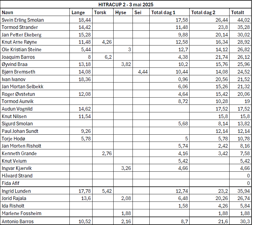 Liker du spenningen ved å kjenne et skikkelig napp i stanga? Trondheim Havfiskeklubb er en aktiv og engasjert klubb for alle som brenner for havfiske – enten du er nybegynner eller en erfaren konkurransefisker. Vi har stolte tradisjoner med både VM-, EM-, Nordisk- og Norgesmestere blant våre medlemmer, og vi ønsker stadig flere fiskeentusiaster med på laget! Hos oss får du muligheten til å fiske året rundt med base i Trondheim og utforske noen av Norges beste fiskeplasser. Bli med på turer hvor vi jakter storfisken og utfordrer både ferdigheter og utstyr i alle sesonger. Vi har et inkluderende og sosialt miljø hvor du garantert vil lære nye triks, møte likesinnede og kanskje sette din egen personlige rekord!