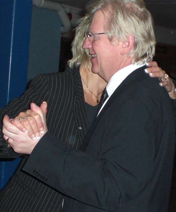 Kveldens musikk var duoen Makalaus og selv jeg klarte å holde rytmen i dansen sånn noen lunde til deres varierte musikk ispedd litt diktlesning og humørskapende innlegg. Som vanlig var det loddsalg og akkurat som før kjøpte alle en masse lodd. Blant mange fine og velsmakende premier var det også en flytedress i XL. Denne vant Anne Marie i fjor, men siden den var så stor så ga hun den tilbake som premie i år. Siden min gamle dress er svært falmet, med flytemidlet nederst i rygg og armer og en rekke sprengte sømmer så ønsket jeg veldig å vinne denne.