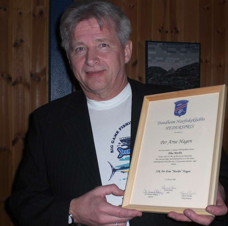 Formann Øyvind Braa, hadde gleden av å dele ut hedersbevis til de som står for store fiskeprestasjoner og som representerer klubben utad på en svært god måte. Her ble mor og sønn Handeland beæret for sine prestasjoner. Klubben er tydeligvis og med god grunn svært stolt av å ha Torunn som medlem. Videre ble også Sigurd fortjent beæret før kveldens mest spesielle hedersbevisning gikk til han som heretter skal tituleres som ”sir” Per Arne ”Marlin” Hagen.