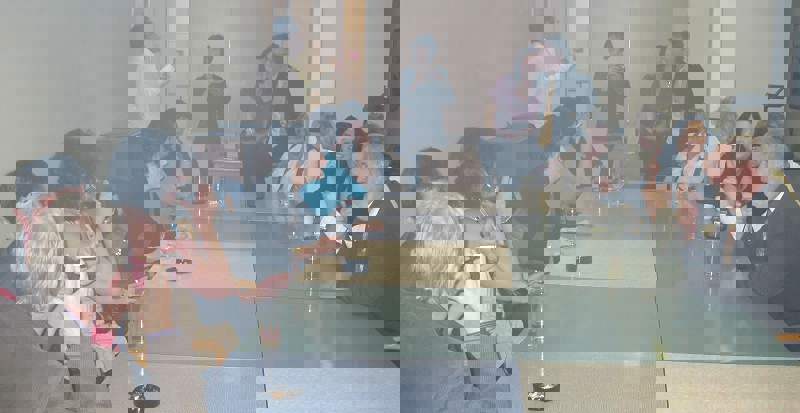 Presis klokken 1800 åpnet Sidsel og jeg døren til festlokalet. Dette var vårt første møte med Trondheim båtforenings lokaler i Fjordgata og vi var faktisk de første gjestene også. Men kveldens vertskap, Per Arne og Randi hadde alt under kontroll og ønsket oss velkommen med en forfriskende aperitiff. De hadde også sørget for et gjennomført pyntet bord i vårgrønne farger.