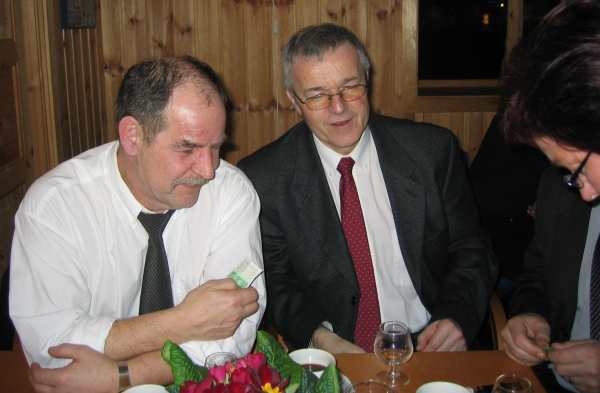 Klokken 2115 ble det anledning til å forsyne seg med kaffe avec og en kake på 30 år med klubbens logo, eller? Nevnte jeg at Eldbjørg Jensen ble hedret i sitt fravær ved at vi skålte der vi var og hun der hun var klokken kl.2030? Knut Nilsen og Øyvind Braa ble utnevnt til æresmedlemmer av klubben for fortjenestfullt innsats. Gjennom mange år. Hedret ble også Svein Tømmerdal og Runolf Lunden for deres innsats for klubben. Old boys spilte siden opp til dans - og det gjorde vi så mang ei tå var blå. Siden var det interessant å vite for alle som hadde betalt for et nummer eller ti –om de fikk utbytte av det, og det ble det ikke for alle. Siden ble det danset og jodlet. Tunga satt løst i munnen på mange. Dype tanker kom utydelig til uttrykk og det ble viktig å få tak i taxi mens den enda skjønte hvor vi skulle hentes. En hyggelig aften var kommet til en slutt.