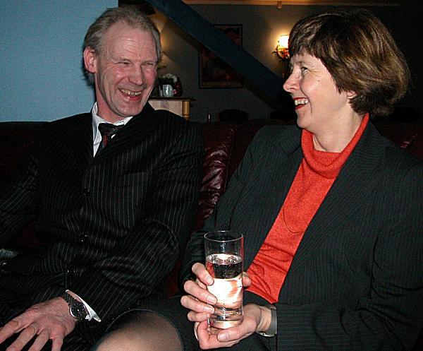 Loddsalget gikk strykende. Loddselgerne føyer seg inn i rekken av tidligere legendariske pengeinnkrevere, jeg skal ikke nevne navn. Skal jeg kritisere festkomiteen for noe så må det være at de er svært dårlig til å budsjettere. De hadde håpet på kr 2.000,- og så kom det inn over kr 7.000,-. Sånt går bare ikke an. Gavebordet bugnet av alskens saker og ting som mange hadde lyst på. Takk til givere, en flytedress mm. fra Sjøkroken fortjener å bli nevnt særskilt. Det kan være greit å vite sammenhengen hvis du ser Jo Idar jogge rundt i ny dress mens han tar tiden med sin nye klokke, Kåre som tar på seg havfiskeselen når myggen blir for intens og som sover ut i nytt sengesett med sin kjære, Per Arne kjøre rundt i nyvasket bil, Geir Magne med nyvasket hår til en forandring, men det topper seg liksom når Ole Martin fosser langs Tautra-landet på surfebrett hjem til Ekne.