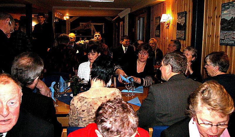 For det meste til fots ankom 42 feststemte og pyntede deltagere til årets fest i klubben. Det regnet og bles, men vi havfiskere har vært ute en vinterdag før. Jo Idar og Finn var festkomité, et godt tospann som med myndig og vennlig dirigering skape den riktige atmosfære. Jo det skal godt gjøres å Finn-e andre som er bedre skikket til en slik jobb.