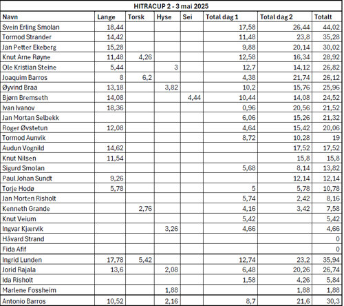Totalt denne dagen kom det opp ca 20 langer mellom 12 -19 kg. Svein Erling tok også denne dagen den største langen 18,44 kg med Ivan Ivanov som forbedret rekorden sin til ei lange på 18.36 kg. Det som var litt merkelig denne dagen, var at all seien var total fraværende.